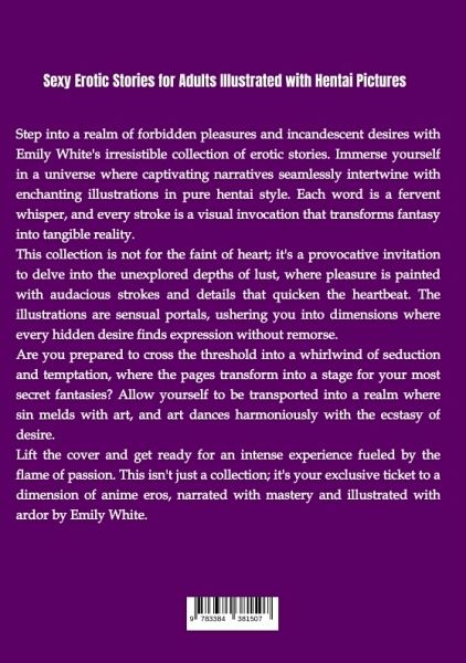 Indulge in an Unforgettable Journey of Passion and Temptation with Emily White's Erotic Masterpiece!Step into a captivating world where seduction knows no bounds in Emily White's latest collection of scintillating erotic stories, enriched with enchanting hentai illustrations. Immerse yourself in a universe where each word is a whispered promise, and every brushstroke is a visual enchantment that brings fantasies to life in pure hentai style.This collection is a daring invitation to explore the uncharted depths of desire, where pleasure unfolds with audacious strokes and details that will quicken your heartbeat. The carefully crafted hentai illustrations serve as sensuous portals, transporting you into dimensions where every hidden fantasy finds unabashed expression.What to Expect:- A Fusion of Literary Mastery and Sensual Artistry- Explicit and Alluring Hentai Illustrations- Stories That Explore the Boundaries of Lust and Fantasy- A Whirlwind of Seduction and TemptationThis isn'tjust a collection; it's your exclusive ticket to a dimension of hentai eros, meticulously narrated and ardently illustrated by Emily White. Lift the cover and prepare for an intense experience fueled by the flame of passion.Caution: This Collection is Not for the Faint of Heart. Are You Ready to Cross the Threshold?