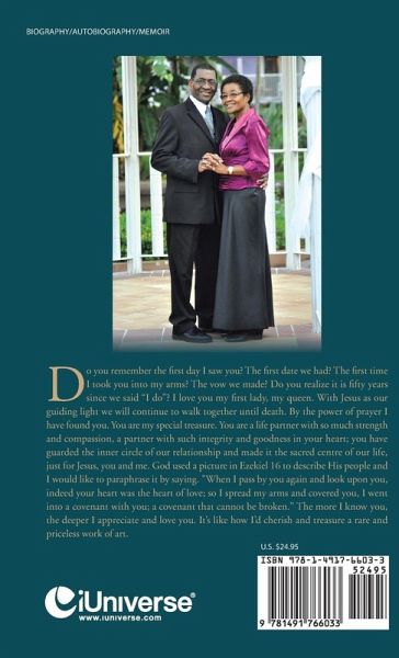 Do you remember the first day I saw you? The first date we had? The first time I took you into my arms? The vow we made? Do you realize it is fifty years since we said "I do"? I love you my first lady, my queen. With Jesus as our guiding light we will continue to walk together until death. By the power of prayer I have found you. You are my special treasure. You are a life partner with so much strength and compassion, a partner with such integrity and goodness in your heart; you have guarded the inner circle of our relationship and made it the sacred centre of our life, just for Jesus, you and me. God used a picture in Ezekiel 16 to describe His people and I would like to paraphrase it by saying. "When I pass by you again and look upon you, indeed your heart was the heart of love; so I spread my arms and covered you, I went into a covenant with you; a covenant that cannot be broken." The more I know you, the deeper I appreciate and love you. It's like how I'd cherish and treasure a rare and priceless work of art.