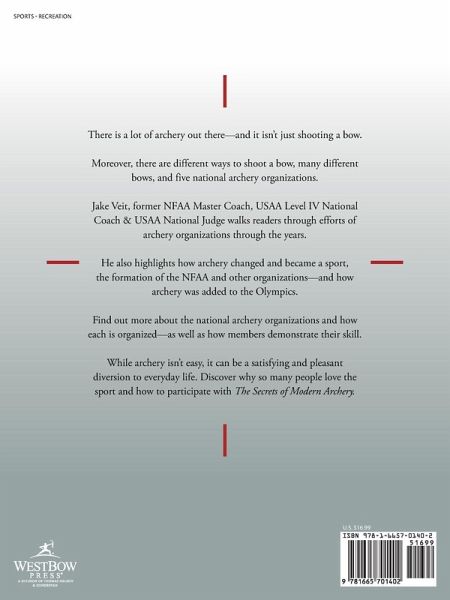There is a lot of archery out there-and it isn't just shooting a bow. Moreover, there are different ways to shoot a bow, many different bows, and five national archery organizations. Jake Veit, former NFAA Master Coach, USAA Level IV National Coach & USAA National Judge walks readers through efforts of archery organizations through the years. He also highlights how archery changed and became a sport, the formation of the NFAA and other organizations-and how archery was added to the Olympics. Find out more about the national archery organizations and how each is organized-as well as how members demonstrate their skill. While archery isn't easy, it can be a satisfying and pleasant diversion to everyday life. Discover why so many people love the sport and how to participate with The Secrets of Modern Archery.