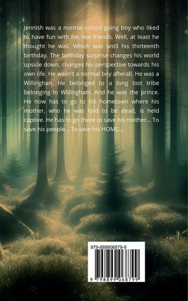Jennish was a normal school going boy who liked to have fun with his few friends. Well, at least he thought he was. Which was until his thirteenth birthday. The birthday surprise changes his world upside down, changes his perspective towards his own life. He wasn't a normal boy afterall. He was a Willinghan. He belonged to a long lost tribe belonging to Willingham. And he was the prince. He now has to go to his hometown where his mother, who he was told to be dead, is held captive. He has to go there to save his mother... To save his people... To save his HOME....