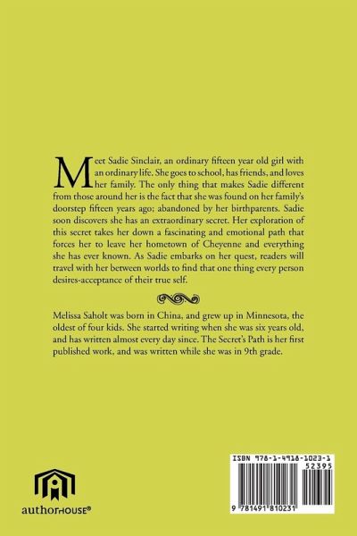 Meet Sadie Sinclair, an ordinary fifteen year old girl with an ordinary life. She goes to school, has friends, and loves her family. The only thing that makes Sadie different from those around her is the fact that she was found on her family's doorstep fifteen years ago; abandoned by her birthparents. Sadie soon discovers she has an extraordinary secret. Her exploration of this secret takes her down a fascinating and emotional path that forces her to leave her hometown of Cheyenne and everything she has ever known. As Sadie embarks on her quest, readers will travel with her between worlds to find that one thing every person desires-acceptance of their true self.