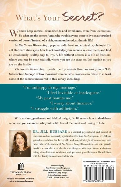 Women keep secrets - from friends and loved ones, even from themselves. So what are the secrets? And why would anyone want to live an airbrushed version of herself instead of a rich, unencumbered, authentic life? In The Secrets Women Keep, popular radio host and clinical psychologist Dr. Jill Hubbard shows you how to acknowledge your secrets, release them, and find an emotionally healthy way to live. A life without secrets is a life of freedom, where you can be your real self, where you are the same on the outside as you are on the inside. The Secrets Women Keep reveals the top secrets from an anonymous "Life Satisfaction Survey" of two thousand women. Most women can relate to at least some of the secrets uncovered in this survey, including: I'm unhappy in my marriage I feel invisible or inadequate My past haunts me I worry about finances I struggle with addiction With wisdom, gentleness, and biblical insight, Dr. Jill reveals how to shed those secrets so you can move safely into a life free of the burden of having to hide.