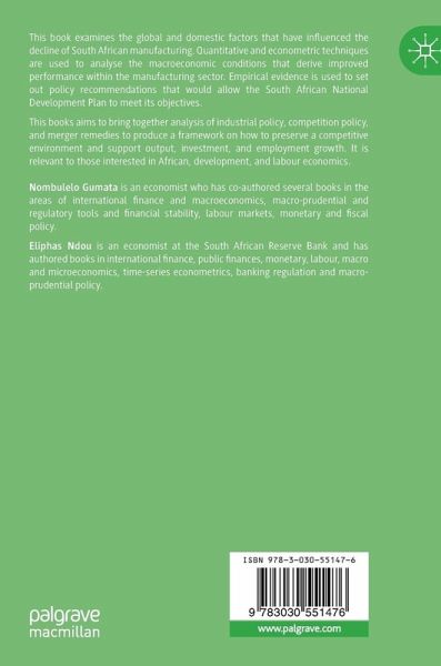 This book examines the global and domestic factors that have influenced the decline of South African manufacturing. Quantitative and econometric techniques are used to analyse the macroeconomic conditions that derive improved performance within the manufacturing sector. Empirical evidence is used to set out policy recommendations that would allow the South African National Development Plan to meet its objectives.