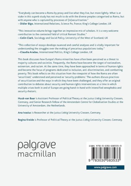 This book discusses how Europe's Roma minorities have often been perceived as a threat to majority cultures and societies. Frequently, the Roma have become the target of nationalism, extremism, and racism. At the same time, they have been approached in terms of human rights and become the focus of programs dedicated to inclusion, anti-discrimination, and combatting poverty. This book reflects on this situation from the viewpoint of how the Roma are often 'securitized,' understood and perceived as 'security problems.' The authors discuss practices of securitization and the ways in which they have been challenged, and they offer an original contribution to debates about security and human rights interventions at a time in which multiple crises both in and of Europe are going hand-in-hand with intensified xenophobia and security rhetoric.