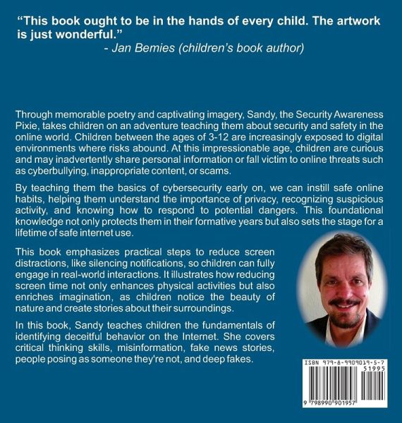 Through memorable poetry and captivating imagery, Sandy, the Security Awareness Pixie, takes children on an adventure teaching them about security and safety in the online world. Children between the ages of 3-12 are increasingly exposed to digital environments where risks abound. At this impressionable age, children are curious and may inadvertently share personal information or fall victim to online threats such as cyberbullying, inappropriate content, or scams. By teaching them the basics of cybersecurity early on, we can instill safe online habits, helping them understand the importance of privacy, recognizing suspicious activity, and knowing how to respond to potential dangers. This foundational knowledge not only protects them in their formative years but also sets the stage for a lifetime of safe internet use. In this book, Sandy teaches children the fundamentals of identifying deceitful behavior on the Internet. She covers critical thinking skills, misinformation, fake news stories, people posing as someone they're not, and deep fakes.