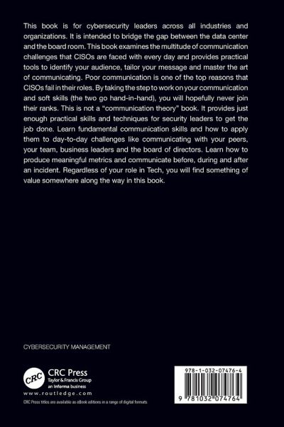 This book is for cybersecurity leaders across all industries and organizations. It is intended to bridge the gap between the data center and the board room. It provides just enough practical skills and techniques for security leaders to get the job done.