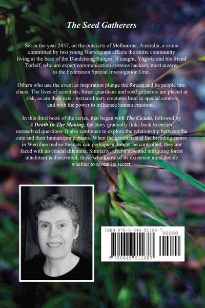 In the year 2457, in the Dandenong Ranges, on the outskirts of Melbourne, Australia, a crime is committed by two young Norwegians that affects the entire community. If caught, Yngwie and his friend Torleif, who are expert communication systems hackers, must answer to the Federation Special Investigation Unit. Others use the event as inspiration, plunging the forests and its people into chaos. The lives of scientists, forest guardians and seed gatherers are placed at risk, as are their cats - remarkable creatures bred in special centres and able to influence human emotions. Meanwhile, a new and intriguing forest inhabitant is discovered and those who know of its existence must decide whether to reveal its secret. In this third book of the series, that began with 'The Cicada', followed by 'A Death In The Making', the story gradually links back to earlier, unresolved questions and continues to explore the relationship between the main characters and their feline companions.