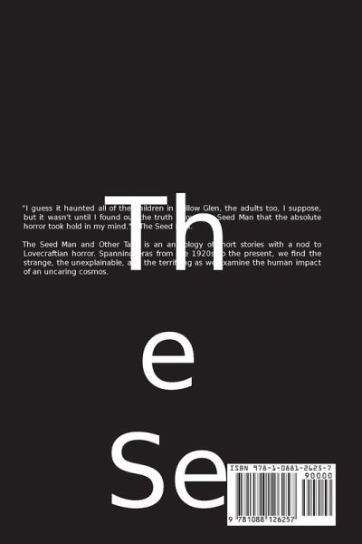 "I guess it haunted all of the children in Willow Glen, the adults too, I suppose, but it wasn't until I found out the truth about The Seed Man that the absolute horror took hold in my mind." - The Seed Man. The Seed Man and Other Tales is an anthology of short stories with a nod to Lovecraftian horror. Spanning eras from the 1920s to the present, we find the strange, the unexplainable, and the terrifying as we examine the human impact of an uncaring cosmos.