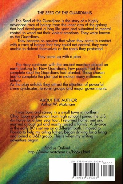 The Seed of the Guardians is the story of a highly advanced race of beings from the inner arm of the galaxy that had developed a long life span and submitted to mental control to weed out their violent emotions. The plan worked and they spread their non-violent philosophy thru their section of the galaxy, over-seeing the other peoples they came in contact with. They were known as the Guardians. They became so passive that when they came in contact with a race of beings that they could not control, they were unable to defend themselves or the races they protected. They came up with a plan to send one of their ships to the next arm of the galaxy and attempt to plant the seeds of their long life and controlled passions in another race that could still fight if need be.