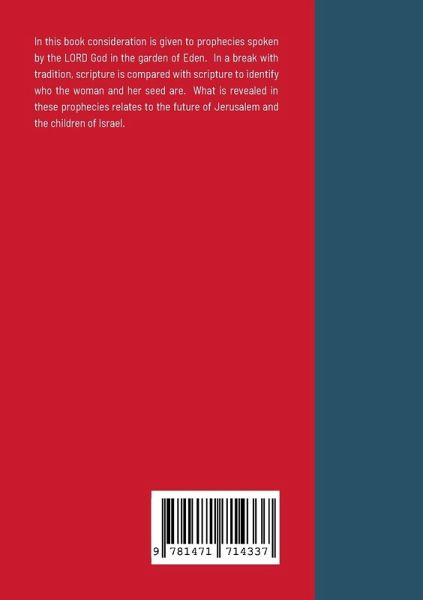 In this book consideration is given to prophecies spoken by the LORD God in the garden of Eden. In a break with tradition, scripture is compared with scripture to identify who the woman and her seed are. What is revealed in these prophecies relates to the future of Jerusalem and the children of Israel.