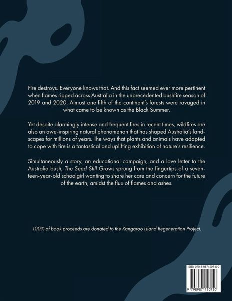 Fire destroys. Everyone knows that. And this fact seemed ever more accurate when flames ripped across Australia in an unprecedented bushfire season in the summer of 2019 and 2020. Almost one fifth of the continent's forests were ravaged in what came to be known as the Black Summer. Yet despite alarmingly intense and frequent fires in recent years, wildfires are also an awe-inspiring natural phenomenon that has shaped Australia's landscapes for millions of years. The ways that plants and animals have adapted to cope with fire is a fantastical and uplifting exhibition of nature's resilience. Simultaneously a story, an educational campaign, and a love letter to the Australia bush, The Seed Still Grows arises from the fingertips of a seventeen-year-old schoolgirl wanting to share her care and concern for the future of the earth, amidst the flux of flames and ashes. 100% of book proceeds are donated to the Kangaroo Island Regeneration Project.
