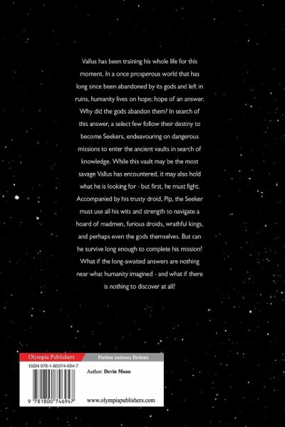 Vallus has been training his whole life for this moment. In a once prosperous world that has long since been abandoned by its gods and left in ruins, humanity lives on hope; hope of an answer. Why did the gods abandon them? In search of this answer, a select few follow their destiny to become Seekers, endeavouring on dangerous missions to enter the ancient vaults in search of knowledge. While this vault may be the most savage Vallus has encountered, it may also hold what he is looking for - but first, he must fight. Accompanied by his trusty droid, Pip, the Seeker must use all his wits and strength to navigate a hoard of madmen, furious droids, wrathful kings, and perhaps even the gods themselves. But can he survive long enough to complete his mission? What if the long-awaited answers are nothing near what humanity imagined - and what if there is nothing to discover at all?