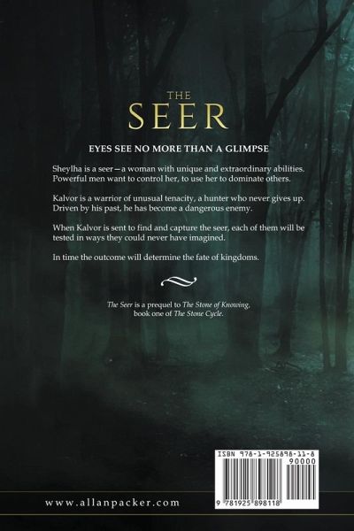 Eyes see no more than a glimpse Sheylha is a seer—a woman with unique and extraordinary abilities. Powerful men want to control her, to use her to dominate others. Kalvor is a warrior of unusual tenacity, a hunter who never gives up. Driven by his past, he has become a dangerous enemy. When Kalvor is sent to find and capture the seer, each of them will be tested in ways they could never have imagined. In time the outcome will determine the fate of kingdoms. ---- The Seer is a standalone story of novelette length (5 chapters). It is a prequel to The Stone of Knowing, book one of The Stone Cycle.