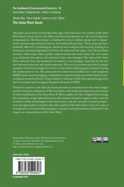 This open access book reviews the water-agro-food and socio-eco-system of the Seine River basin (76,000 km2), and offers a historical perspective on the river's long-term contamination. The Seine basin is inhabited by circa 17 million people and is impacted by intensive agricultural practices and industrial activities. These pressures have gradually affected its hydrological, chemical and ecological functioning, leading to a maximum chemical degradation between the 1960s and the 1990s. Over the last three decades, while major water-quality improvements have been observed, new issues (e.g. endocrine disruptors, microplastics) have also emerged. The state of the Seine River network, from the headwaters to estuary, is increasingly controlled by the balance between pressures and social responses. This socio-ecosystem provides a unique example of the functioning of a territory under heavy anthropogenic pressure during the Anthropocene era. The achievements made were possible due to the long-term PIREN Seine research program, established in 1989 and today part of the French socio-ecological research network "Zones Ateliers", itself part of the international Long-term Socio-economic and Ecological Research Network (LTSER).