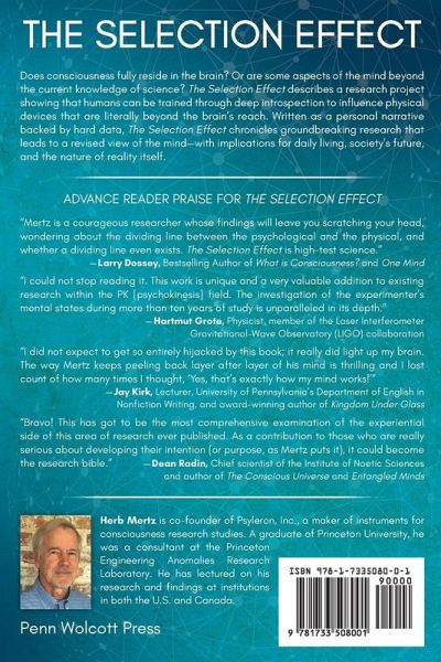 The Selection Effect explores a personal training process that allows one's consciousness to influence real-world physical events in ways that cannot be attributed to brain activity alone. Backed by rigorous data, it describes findings that challenge our current thinking about consciousness, the mind, and the nature of reality. The more we come to understand ourselves, the more we can change our fundamental relationship to the world in ways beneficial to our species.