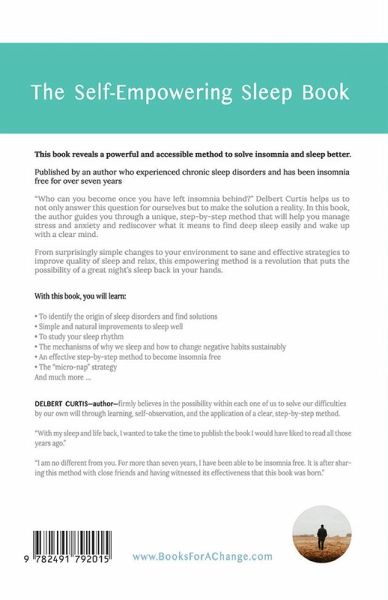 ¿ THE KEY TO EXCELLENT SLEEP This book guides you through a unique and easy 3-step sleep method with no pills, no diets, and no complexity. Experience significant improvements within 5 days to 4 weeks. If you are looking for solutions to get the sleep you need, you want to read this book. In a hyperactive culture where it is increasingly difficult to disconnect, disrupted sleep patterns and circadian rhythm disorders are becoming the norm. It is no wonder that over 35% of Americans endure the debilitating effects of sleep disorders every year. Who better to share practical solutions that will help you sleep smarter than someone who has been through the difficulties of insomnia and solved them? From surprisingly simple changes to your environment to sane and effective strategies to fall asleep faster, this efficient method brings you the possibility of a great night's sleep. ¿ AN ESSENTIAL GUIDE FOR EVERYONE: Uncover a powerful 3-step method to sleep soundly Identify the origin of your sleep difficulties - unlock practical solutions Train yourself to fall asleep through a mindfulness approach See the big picture over a 15-day period with the Sleep Graph-Test Study your daily sleep rhythm - solve sleep schedule issues Learn how to regulate your sleep rhythm sustainably for long term benefits Discover the "micro-nap" strategy and boost your energy throughout the day And much more... ¿ HELP SOLVE SLEEP ISSUES LIKE:Short-term and chronic insomnia Occasional sleeplessness Anxiety and stress-related to sleep Irregular sleep schedules Sleep-related circadian rhythm disorders Insufficient sleep syndrome ¿ ANSWERS TO QUESTIONS SUCH AS:How can I fall asleep faster and be fully rested each day? How can I manage stress and anxiety related to sleep? Is sleep deprivation dangerous? What should I do to sleep better? How can I use a sleep meditation effectively? How can I use this guide to get a consistent sleep? The Self-Empowering Sleep Book is the decisive guide to enhance sleep and bring long-term change for a joyful life.