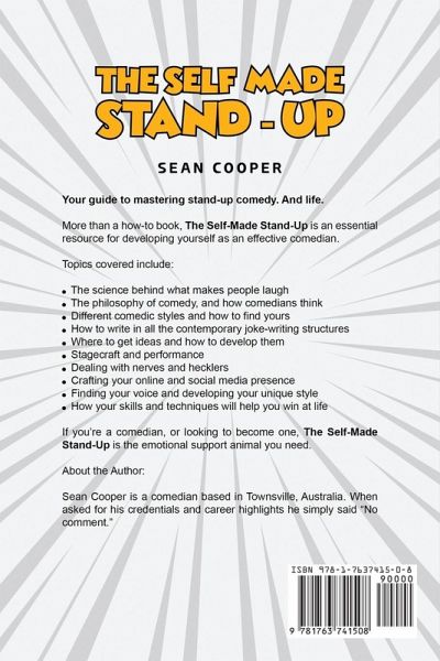 More than a how-to book, The Self-Made Stand-Up is an essential resource for developing yourself as an effective comedian. Topics covered include: -The science behind what makes people laugh -The philosophy of comedy, and how comedians think -Different comedic styles and how to find yours -How to write in all the contemporary joke-writing structures -Where to get ideas and how to develop them -Stagecraft and performance -Dealing with nerves and hecklers -Crafting your online and social media presence -Finding your voice and developing your unique style -How your skills and techniques will help you win at life If you're a comedian, or looking to become one, The Self-Made Stand-Up is the emotional support animal you need.