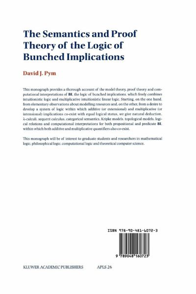 From the reviews: "This monograph presents a mathematical theory of the logic of BI ... . Due to the author's clear and approachable style this book may be interesting to a large circle of logicians, mathematicians and computer scientists. In particular, it could be useful to graduate students, specialists and researchers in the field of applications of logic in programming. In addition to its other qualities, this book also presents a significant contribution to a new area of mathematical logic-fibring logic ... ." (Branislav Boricic, Mathematical Reviews, Issue 2008 i)