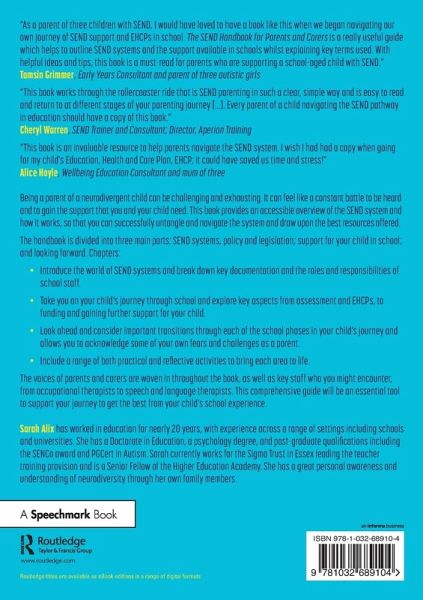 About the Author Acknowledgements Introduction: How to use this book PART I SEND SYSTEMS, POLICY AND LEGISLATION CHAPTER 1 How Did We Get Our Current SEND System in Schools? CHAPTER 2 What Is the Code of Practice and What Does it Mean? The Roles and Responsibilities of School Staff PART II SUPPORT FOR YOUR CHILD IN SCHOOL CHAPTER 3 How Your Child is Assessed in School: The Graduated Approach CHAPTER 4 Education, Health and Care Plans: What Are They, How to Apply and How to Appeal a Decision CHAPTER 5 Funding and Support for Your Child PART III LOOKING FORWARD CHAPTER 6 Transitions: From Early Years to Post-16 and Beyond CHAPTER 7 How to Get the Most from Parents' Evenings, Review Meetings and Annual Reviews CHAPTER 8 Supporting Your Child at Home with Their Education CHAPTER 9 What Next for Your Child?: Looking to the Future Glossary of Key Terms Index