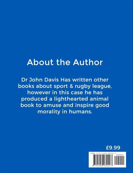 Dr John Davis Has written other books about sport & rugby league, however in this case he has produced a lighthearted animal book to amuse and inspire good morality in humans.