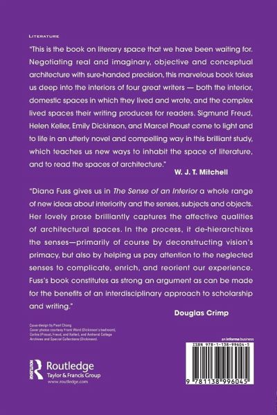 The Sense of an Interior is a fascinating exploration of domestic space and of the ways it determines how writers work. The book looks at four famous figures - Emily Dickinson, Sigmund Freud, Helen Keller, and Marcel Proust, and examines the relationship between their work and the spaces where they wrote.