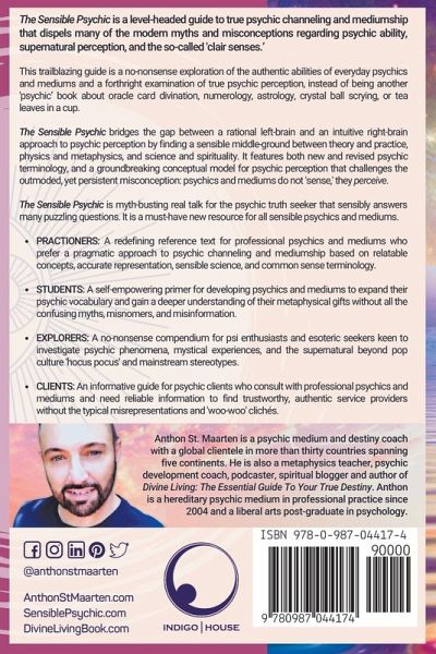 The Sensible Psychic: A Leading-Edge Guide To True Psychic Perception And The Supernatural Experiences Of Everyday Psychics And Mediums The Sensible Psychic is a level-headed guide to genuine psychic channeling and mediumship that dispels many of the modern myths and misconceptions regarding true psychic ability, supernatural perception, and the so-called 'clair senses.' This trailblazing guide is an honest, no-nonsense exploration of the authentic abilities of everyday psychics and mediums and a forthright examination of true psychic perception and supernatural channeling, instead of just being another 'psychic' book about oracle card divination, numerology, astrology, crystal ball scrying or reading tea leaves in a cup. The Sensible Psychic bridges the gap between a rational left-brain and an intuitive right-brain approach to psychic perception by finding a level-headed middle-ground between theory and practice, physics and metaphysics, and science and spirituality. It is a sober, user-friendly account that features both new and revised psychic terminology, as well as a re-imagined conceptual model for psychic perception that challenges an outmoded, yet persistent misconception: psychics and mediums do not 'sense,' they perceive. The Sensible Psychic is mythbusting real talk for the psychic truth seeker and a must-have new resource for all sensible psychics and mediums. PRACTITIONERS A redefining reference text for psychic professionals who prefer a sensible, pragmatic approach to psychic channeling and mediumship based on relatable concepts, accurate representation, sensible science, and common sense terminology. STUDENTS A self-empowering primer for developing psychics and mediums who want to expand their psychic vocabulary and gain a deeper understanding of their metaphysical gifts without the confusing myths, misnomers and misinformation. EXPLORERS A no-nonsense compendium for psi enthusiasts and esoteric seekers keen to investigate authentic psychic phenomena, mystical experiences and the supernatural beyond pop culture 'hocus pocus' and mainstream stereotypes. CLIENTS An informative guide for psychic clients who consult with professional psychics and mediums who need reliable information to help them find trustworthy, authentic service providers without the typical misrepresentations and 'woo-woo' clichés. ABOUT THE AUTHOR The Sensible Psychic: A Leading-Edge Guide To True Psychic Perception is inspired by a seasoned psychic medium's lifelong quest to understand his own psychic abilities and supernatural experiences. In this groundbreaking guide he shares what he has learned with other psychics and mediums who are also navigating the many myths, misnomers, and misinformation about true psychic perception. Anthon St. Maarten is a psychic medium and destiny coach with a global clientele in more than thirty countries spanning five continents. He is also a metaphysics teacher, podcaster, spiritual blogger, and author of Divine Living: The Essential Guide To Your True Destiny. Anthon is a hereditary psychic medium in professional practice since 2004 and a liberal arts postgraduate with a degree in psychology.
