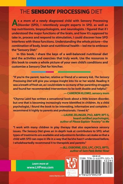 As a mom of a newly diagnosed child with Sensory Processing Disorder (SPD), I relentlessly sought experts in SPD, as well as top nutritionists, biopsychologists, and neurologists. I figured that if I understood the major functions of the brain, and how it's supposed to take in, process and respond to stimulation, I could discover how SPD interferes with these functions. Understanding the whole picture - the combination of body, brain and nutritional health - led me to embrace the "Sensory Diet." In this book, I share the keys of a well-balanced nutritional diet and the activities and exercises that truly work. Use the resources in this book to create a whole picture of your own child's conditions and customize a Sensory Diet for him/her. "If you're the parent, teacher, relative or friend of a sensory kid, The Sensory Processing Diet will give you unique insight into his or her world. Reading it was a breath of fresh air, as I could relate to so many of her parenting struggles and found her recommended interventions to be both doable and helpful." - CAMERON KLEIMO, sensory mom "Chynna Laird has written a sensational book about a little known disorder, but one that is becoming increasingly more identified in children. As a child psychologist, I found the book to be interesting, informative and complete. I recommend it highly to parents and professionals. I loved it." -LAURIE ZELINGER, PhD, ABPP, RPT-S, board certified psychologist, author of Please Explain "Anxiety" to Me "I work with many children in play therapy that also experience sensory issues. The Sensory Diet gives an in-depth look at contributors to SPD, what types of treatments are available and adjustments families can make so that a child with SPD can cope in life in a way that he/she hasn't understood before. I wholeheartedly recommend it to therapists and parents." -JILL OSBORNE, EDS, LPC, CPCS, RPTS, author of Sam Feels Better Now! CHYNNA LAIRD - is a mother of four, a freelance writer, blogger, editor and award-winning author. Her passion is helping children and families living with Sensory Processing Disorder (SPD), mental and/or emotional struggles and other special needs. She's authored two children's books, two memoirs, a parent-to-parent resource book, a Young Adult novella, a Young Adult paranormal/suspense novel series, two New Adult contemporary novels and an adult suspense/thriller. Website: www.chynnalairdauthor.ca From Loving Healing Press www.LHPRess.com