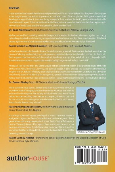 The Portrait of a True Brand: Pastor Tunde Bakare as a Model is a book written with you in mind. This book definitely is not an attempt to blow anyone's trumpet, but what you are holding in your hand is the result of obedience to the Spirit of the Lord. It is my belief, therefore, that there is something in this book for your benefit. Also, the contents of this book are not fabrications, and there is no exaggeration in it either. This book is certainly going to deliver to you the following: -It will make you to have a true encounter with the life of a man who is scripturally walking with the Lord. -It will give to you insight into the life of a Muslim boy who later met the Lord Jesus and the vision of his call. -It will reveal to you the authenticity and the sincerity of a man that some see as controversial but whom the Lord has called to speak for him. -It will confirm to you the truth that we are all on a journey but that there is a destination beyond the visible. Therefore, we must see the reason to live this life to the fullness in Christ and for his glory alone. -It will enable you to learn and to emulate at least one thing from the life of this man who is an intercessor, a pastor, a prophet, and a nation builder indeed.