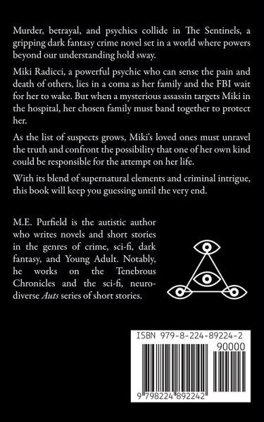 Murder, betrayal, and psychics collide in The Sentinels, a gripping dark fantasy crime novel set in a world where powers beyond our understanding hold sway. Miki Radicci, a powerful psychic who can sense the pain and death of others, lies in a coma as her family and the FBI wait for her to wake. But when a mysterious assassin targets Miki in the hospital, her chosen family must band together to protect her. As the list of suspects grows, Miki's loved ones must unravel the truth and confront the possibility that one of her own kind could be responsible for the attempt on her life. With its blend of supernatural elements and criminal intrigue, this book will keep you guessing until the very end. So don't delay - grab your copy of The Sentinels now!