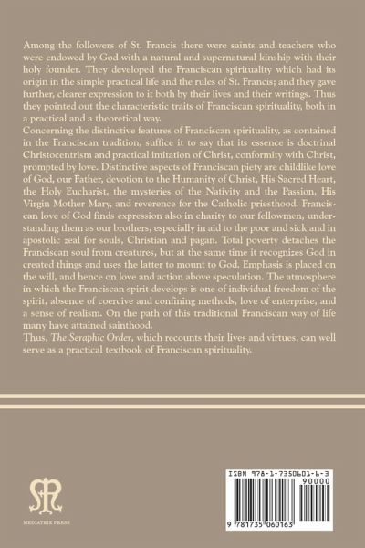 Among the followers of St. Francis there were saints and teachers who were endowed by God with a natural and supernatural kinship with their holy founder. They developed the Franciscan spirituality which had its origin in the simple practical life and the rules of St. Francis; and they gave further, clearer expression to it both by their lives and their writings. Thus they pointed out the characteristic traits of Franciscan spirituality, both in a practical and a theoretical way. Concerning the distinctive features of Franciscan spirituality, as contained in the Franciscan tradition, suffice it to say that its essence is doctrinal Christocentrism and practical imitation of Christ, conformity with Christ, prompted by love. Distinctive aspects of Franciscan piety are childlike love of God, our Father, devotion to the Humanity of Christ, His Sacred Heart, the Holy Eucharist, the mysteries of the Nativity and the Passion, His Virgin Mother Mary, and reverence for the Catholic priesthood. Franciscan love of God finds expression also in charity to our fellowmen, understanding them as our brothers, especially in aid to the poor and sick and in apostolic zeal for souls, Christian and pagan. Total poverty detaches the Franciscan soul from creatures, but at the same time it recognizes God in created things and uses the latter to mount to God. Emphasis is placed on the will, and hence on love and action above speculation. The atmosphere in which the Franciscan spirit develops is one of individual freedom of the spirit, absence of coercive and confining methods, love of enterprise, and a sense of realism. On the path of this traditional Franciscan way of life many have attained sainthood. Thus, The Seraphic Order, which recounts their lives and virtues, can well serve as a practical textbook of Franciscan spirituality.