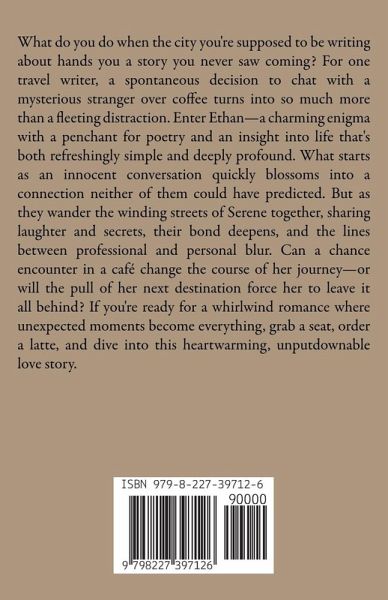 What do you do when the city you're supposed to be writing about hands you a story you never saw coming? For one travel writer, a spontaneous decision to chat with a mysterious stranger over coffee turns into so much more than a fleeting distraction. Enter Ethan-a charming enigma with a penchant for poetry and an insight into life that's both refreshingly simple and deeply profound. What starts as an innocent conversation quickly blossoms into a connection neither of them could have predicted. But as they wander the winding streets of Serene together, sharing laughter and secrets, their bond deepens, and the lines between professional and personal blur. Can a chance encounter in a café change the course of her journey-or will the pull of her next destination force her to leave it all behind? If you're ready for a whirlwind romance where unexpected moments become everything, grab a seat, order a latte, and dive into this heartwarming, unputdownable love story.