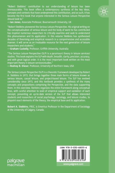 "Stebbins Synthesis of SLP is an original contribution to knowledge as no other author as attempted a synthesis of this theory across the abundance of works and multiple fields. ... The text would be most suitable for both postgraduate and research students in the leisure space as well as academics and researchers with an interest in leisure studies and the SLP." (Stewart Alford, Leisure Studies, May 20, 2021)