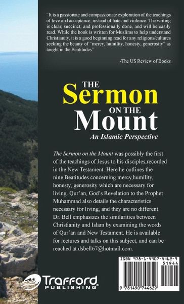 The Sermon on the Mount was possibly the first of the teachings of Jesus to his disciples,recorded in the New Testament. Here he outlines the nine Beatitudes concerning mercy,humility, honesty, generosity which are necessary for living. Qur'an, God's Revelation to the Prophet Muhammad also details the characteristics necessary for living, and they are no different. Dr. Bell emphasizes the similarities between Christianity and Islam by examining the words of Qur'an and New Testament. He is available for lectures and talks on this subject, and can be reached at dsbell67@hotmail.com.