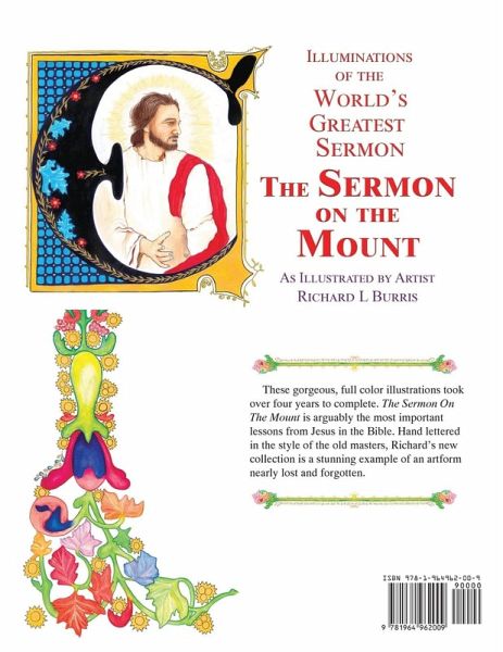 The Sermon on the Mount in Beautiful, Full-Color Illuminations. This collection illustrates the most important teachings of Jesus Christ. Share with those you love and spread the Word with this gorgeous artwork by Richard L Burris.
