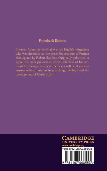 Thomas Adams (1583-1653) was an English clergyman who was described as 'the prose Shakespeare of Puritan theologians' by Robert Southey. Originally published in 1909, this book presents an edited selection of his sermons. Covering a variety of themes, it will be of value to anyone with an interest in preaching, theology and the development of Christianity.