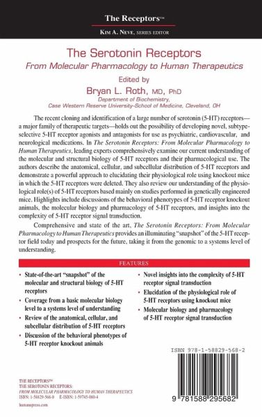 Comprehensive and state of the art, The Serotonin Receptors: From Molecular Pharmacology to Human Therapeutics provides an illuminating "snapshot" of the 5-HT receptor field today and prospects for the future, taking it from the genomic to a systems level of understanding.