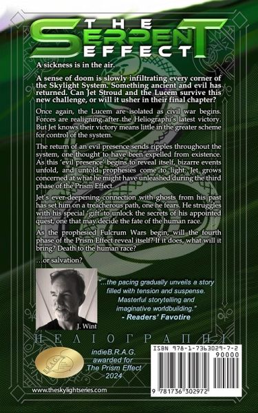 A sickness is in the air. A sense of doom has slowly infiltrated every corner of the Skylight System. Something ancient and evil has returned. Can Jet Stroud and the Lucem survive this new challenge, or will it usher in their final chapter? Once again, the Lucem are isolated as civil war begins. Forces are realigning after the discovery of the Heliographi Memoirs. But Jet knows their victory means little in the greater scheme for the control of Skylight. The return of an evil presence sends ripples throughout the system, one thought to have been expelled from existence. As this 'evil presence' begins to reveal itself, bizarre events unfold, and untold prophesies come to light. Jet grows concerned at what he might have unleashed during the third phase of the Prism Effect. Jet's ever-deepening connection with ghosts from his past has set him on a treacherous path, one that he fears to follow. He struggles with his special 'gift' to unlock the secrets of his appointed quest, one that may decide the fate of the human race. As the prophesied Fulcrum Wars begin, will the fourth phase of the Prism Effect reveal itself? If it does, what will it bring? Death to the human race? ...or salvation?