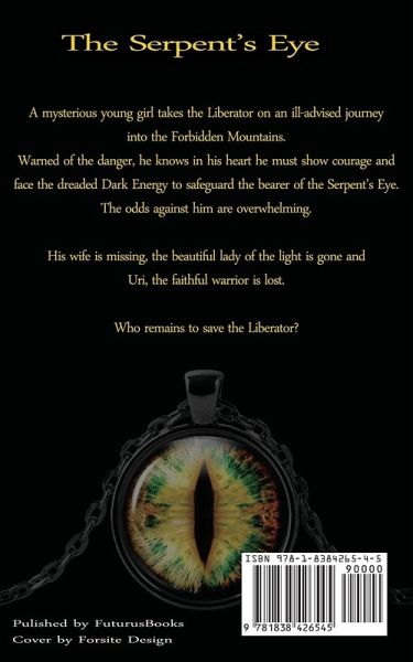 The Serpent's Eye 'The only battle worth the blood is the final one, that which brings us peace.' Regardless of whether it was down to his own failings or because it was meant to be,an enigmatic young girl takes the Liberator on an ill-advised journey into the Forbidden Mountains. Warned of the danger, he knew in his heart he must show courage and face the dreaded Dark Energy to safeguard the bearer of the Serpent's eye. Weakened by the Delta witches, he is forced to fight the unbridled evil of Talon and Ashaman, the Devil's spawn. The odds against him are overwhelming. His wife is missing, the beautiful lady of the light is gone and Uri, the faithful warrior is lost. Who remains to save the Liberator?