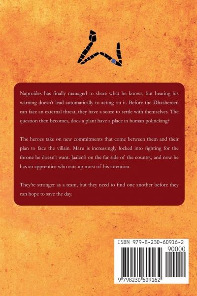 Naproides has finally managed to share what he knows, but hearing his warning doesn't lead automatically to acting on it. Before the Dhashereen can face an external threat, they have a score to settle with themselves. The question then becomes, does a plant have a place in human politicking? The heroes take on new commitments that come between them and their plan to face the villain. Maru is increasingly locked into fighting for the throne he doesn't want. Jaalen's on the far side of the country, and now he has an apprentice who eats up most of his attention. They're stronger as a team, but they need to find one another before they can hope to save the day.