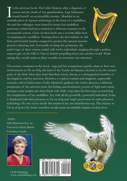 In the previous book, The Celtic Serpent, after a diagnosis of cancer and the death of her grandmother, Angi Talismann found herself on an incredible journey. Shackled to an unstable piece of ancient technology in the form of a medallion, she and her colleagues were forced to locate lost medallion gemstones which had been scattered to different countries in the seventeenth century. Close on their heels was a resolute killer bent on acquiring the medallion. Tracking down the descendants of old Irish and Scottish families assigned to protect this ancient treasure proved a daunting task. Eventually, locating the gemstones, the initial stage of their venture ended with twelve individuals stepping through a golden, serpent gate on the Hill of Tara in Ireland propelling them into another world. While stating they would return in three months, its assurance was uncertain. The journey continues in this book. Angi and her companions quickly adapt to their new environment on Tir na nOg, the land of the Tuatha de Danann, deemed to be the ancient gods of the Irish. Here they learn that their escort, Sirona, is a distinguished member of the kingdom and her ancestor, Myttrwn, is a gifted scientist and magician, supposedly centuries old in Earth terms. Under Myttrwn's guidance the twelve discover a different perspective of the universe, learn the healing and destructive powers of light and sound, and gain some insight into their future role while Angi takes her first steps in mastering the complexities of her medallion. Yet, with all the goodwill, a powerful individual, Zolar, is displeased with their presence in Tir na nOg and Angi's possession of such advanced technology. He sets out to rectify this matter in his own treacherous way. The journey to Tir na nOg for the twelve travellers would create an indelible imprint on their lives. About the Author: Sally Robertson, born in Prince Edward Island, obtained her Bachelor and Master's degrees in Canada, and her PhD from Curtin University of Technology in Australia. She is a Usui Reiki Master and Karuna Reiki Master, author of The Pebble and The Celtic Serpent, co-author of Mission to India and Invitation to Canada, and lives on Vancouver Island, British Columbia, Canada.
