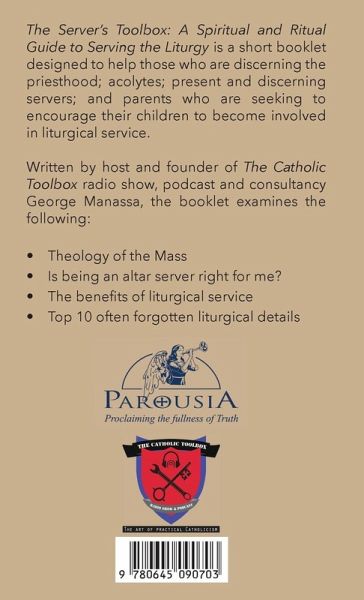 The Server's Toolbox: A Spiritual and Ritual Guide to Serving the Liturgy is a short booklet designed to help those who are discerning the priesthood; acolytes; present and discerning servers; and parents who are seeking to encourage their children to become involved in liturgical service. Written by host and founder of The Catholic Toolbox radio show, podcast and consultancy George Manassa, the booklet examines the following: ¿ Theology of the Mass ¿ Is being an altar server right for me? ¿ The benefits of liturgical service ¿ Top 10 often forgotten liturgical details.
