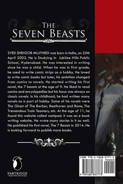 Syed Shehzor Mujthedi was born in India, on 25th April 2002. He studied in Jubilee Hills Public School. He was interested in writing since he was a child. When he was in first grade, he would make comic strips on rough pages. He loved to write comic books but later, his ambition changed from comics to novels. He started writing his first novel, the 7 beasts at the age of 9. He liked to read comics and encyclopedias but mainly focuses on classic novels these days. In his childhood, he had written many novels as a part of hobby. Some of his novels were The Ghost of The Barber, Beethoven and Bane, The Tremendous Train Teamers, etc. At the age of 11, he found this website called wattpad. It was an e book writing website. He wrote many stories in it as well. He published his first novel, The 7 Beasts in 2014. He is looking forward to publish more books.