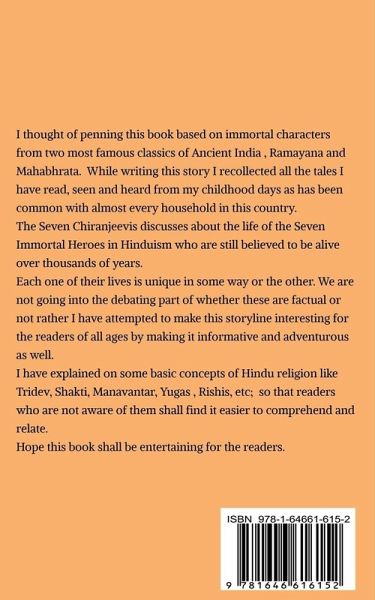 I thought of penning this book based on immortal characters from two most famous classics of Ancient India , Ramayana and Mahabhrata. While writing this story I recollected all the tales I have read, seen and heard from my childhood days as has been common with almost every household in this country. The Seven Chiranjeevis discusses about the life of the Seven Immortal Heroes in Hinduism who are still believed to be alive over thousands of years. Each one of their lives is unique in some way or the other. We are not going into the debating part of whether these are factual or not rather I have attempted to make this storyline interesting for the readers of all ages by making it informative and adventurous as well. I have explained on some basic concepts of Hindu religion like Tridev, Shakti, Manavantar, Yugas , Rishis, etc; so that readers who are not aware of them shall find it easier to comprehend and relate. Hope this book shall be entertaining for the readers. - Subhamoy Banerjee (Author)