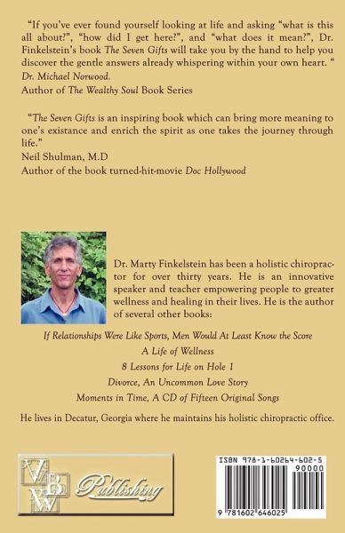 If you've ever found yourself looking at life and asking "what is this all about," "how did I get here" and "what does it all mean," "The 7 Gifts" will take you by the hand to help you discover the gentle answers already whispering within your heart. "The 7 Gifts" takes us on a personal journey through the eyes of the seeker. Dr. Finkelstein uses the gifts of nature and Divine Spirit to help us reconnect with our inner selves. His approach is holistic and mesmerizing. From the beginning, he captures the attention of the reader and they become one with the seeker. One quickly realizes that he is allowing us a glimpse into his own life. The messages and lessons are profound, educational and at times can leave you gasping for air. It is a beautiful and emotional ride on the roller coaster of life. "The 7 Gifts" is an easy read and a timeless gift that will enable the reader to affect positive and life-long changes in their lives.