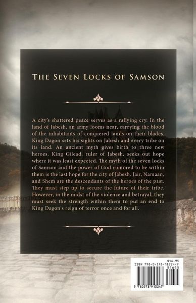 A city's shattered peace serves as a rallying cry. In the land of Jabesh, an army looms near, carrying the blood of the inhabitants of conquered lands on their blades. King Dagon sets his sights on Jabesh and every tribe on its land. An ancient myth gives birth to three new heroes. King Gilead, ruler of Jabesh, seeks out hope where it was least expected. The myth of the seven locks of Samson and the power of God rumored to be within them is the last hope for the city of Jabesh. Jair, Namaan, and Shem are the descendants of the heroes of the past. They must step up to secure the future of their tribe. However, in the midst of the violence and betrayal, they must seek the strength within them to put an end to King Dagon's reign of terror once and for all.
