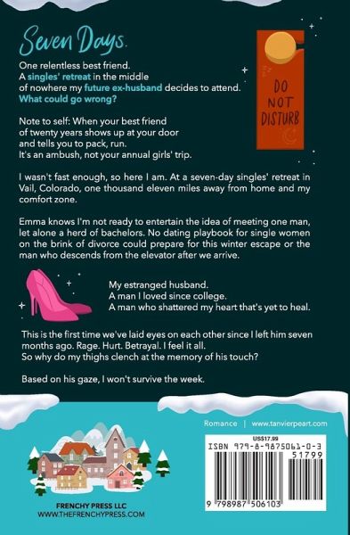 Seven days. One relentless best friend. A singles' retreat in the middle of nowhere my future ex-husband decides to attend. What could go wrong? Note to self: When your best friend of twenty years shows up at your door and tells you to pack, run. It's an ambush, not your annual girls' trip. I wasn't fast enough, so here I am. At a seven-day singles' retreat in Vail, Colorado, 1,011 miles away from home and my comfort zone. Emma knows I'm not ready to entertain the idea of meeting one man, let alone a herd of bachelors. No dating playbook for single women on the brink of divorce could prepare for this winter escape-or the man who descends from the elevator after we arrive. My estranged husband. A man I've loved since college. A man who shattered my heart that's yet to heal. This is the first time we've laid eyes on each other since I left him seven months ago. Rage. Hurt. Betrayal. I feel it all. So why do my thighs clench at the memory of his touch? Based on his gaze, I won't survive the week. A fast read full of shenanigans, The Seven Month Itch is a debut with laughs, tension, and steamy scenes. Perfect for fans of spice, banter, and drama with twists and turns. Tropes include: Second chance Cinnamon roll MMC Opposites attract Dual POV Singles' retreat Winter Hallmark setting Close proximity Heated scenes Keywords: second chance romance, romantic comedy book, contemporary romance books, multicultural romance books, romance novel series, romance comedy book, women romance novels, spicy romance books for adults, diverse romance books, winter romance novels for women