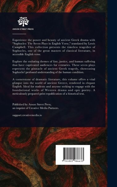 Experience the power and beauty of ancient Greek drama with "Sophocles: The Seven Plays in English Verse," translated by Lewis Campbell. This collection presents the timeless tragedies of Sophocles, one of the great masters of classical literature, in accessible English verse. Explore the enduring themes of fate, justice, and human suffering that have captivated audiences for centuries. These seven plays represent the pinnacle of ancient Greek tragedy, showcasing Sophocles' profound understanding of the human condition. A cornerstone of dramatic literature, this volume offers a vital glimpse into the world of ancient Greece, rendered in elegant English. Ideal for students and anyone seeking to engage with the foundational works of Western drama and epic poetry. A meticulously prepared print republication of a historical text. This work has been selected by scholars as being culturally important, and is part of the knowledge base of civilization as we know it. This work is in the public domain in the United States of America, and possibly other nations. Within the United States, you may freely copy and distribute this work, as no entity (individual or corporate) has a copyright on the body of the work. Scholars believe, and we concur, that this work is important enough to be preserved, reproduced, and made generally available to the public. We appreciate your support of the preservation process, and thank you for being an important part of keeping this knowledge alive and relevant.