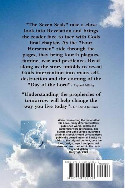 The Seven Seals takes a close look into the book of Revelation and brings the reader face to face with Gods final chapter. As the Four Horsemen ride through the pages, they bring fourth plagues, famine, war and pestilence. Read along as the story unfolds to reveal Gods intervention into mans self-destruction and the coming of the Day of the Lord.