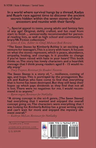 Similar to "The Maze Runner" by James Dashner and "Divergent" by Veronica Roth, "The Seven Stones" shares themes of survival, family bonds, dangerous journeys, and the search for truth and reunification. It captures the courage and determination of siblings, Kadya and Roark as they navigate a challenging and uncertain world. Guided by mysterious stones, outcast teenagers face a perilous journey to find their family and restore hope. When their world is shattered by loss, Kadya and her brother, Ruark, embark on a quest to find their missing family. Guided by the brilliance of a mysterious gem…mehr