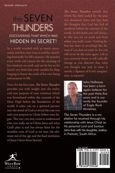 DISCOVERING THAT WHICH WAS HIDDEN IN SECRET! In a world wracked with so much uncertainty and fear, man runs to and fro, searching frantically for life's answers. He searches every nook and cranny for the meaning of his existence on earth and yet he has so far found very little that truly satisfies his deep longing to know the truth of his own being and purpose in life. Now, for the first time, The Seven Thunders provides you with insight into the reality and true purpose of your existence which was formulated within the counsels of the Most High before the foundation of the world. It takes you on a spiritual journey into the mind of God to reveal the true you and your purpose in Christ before time began. This way you may come to understand who you really are in Christ Jesus and what God's plan is and has always been for the manifest sons of God as we near the ultimate end of the age and the final revelation of Jesus Christ from heaven! The Seven Thunders unveils that which has been sealed for the past two thousand years and lays bare the thoughts that God has had of mankind before the creation of the world. In this book you will discover why you are on earth and from where you really come. Nothing before has been so revealing! But beware if you dare to enter in, for you will never be the same again. Life as you currently know it will radically change as you discover that what you thought was real, in time, is merely a figment of God's imagination, in eternity!